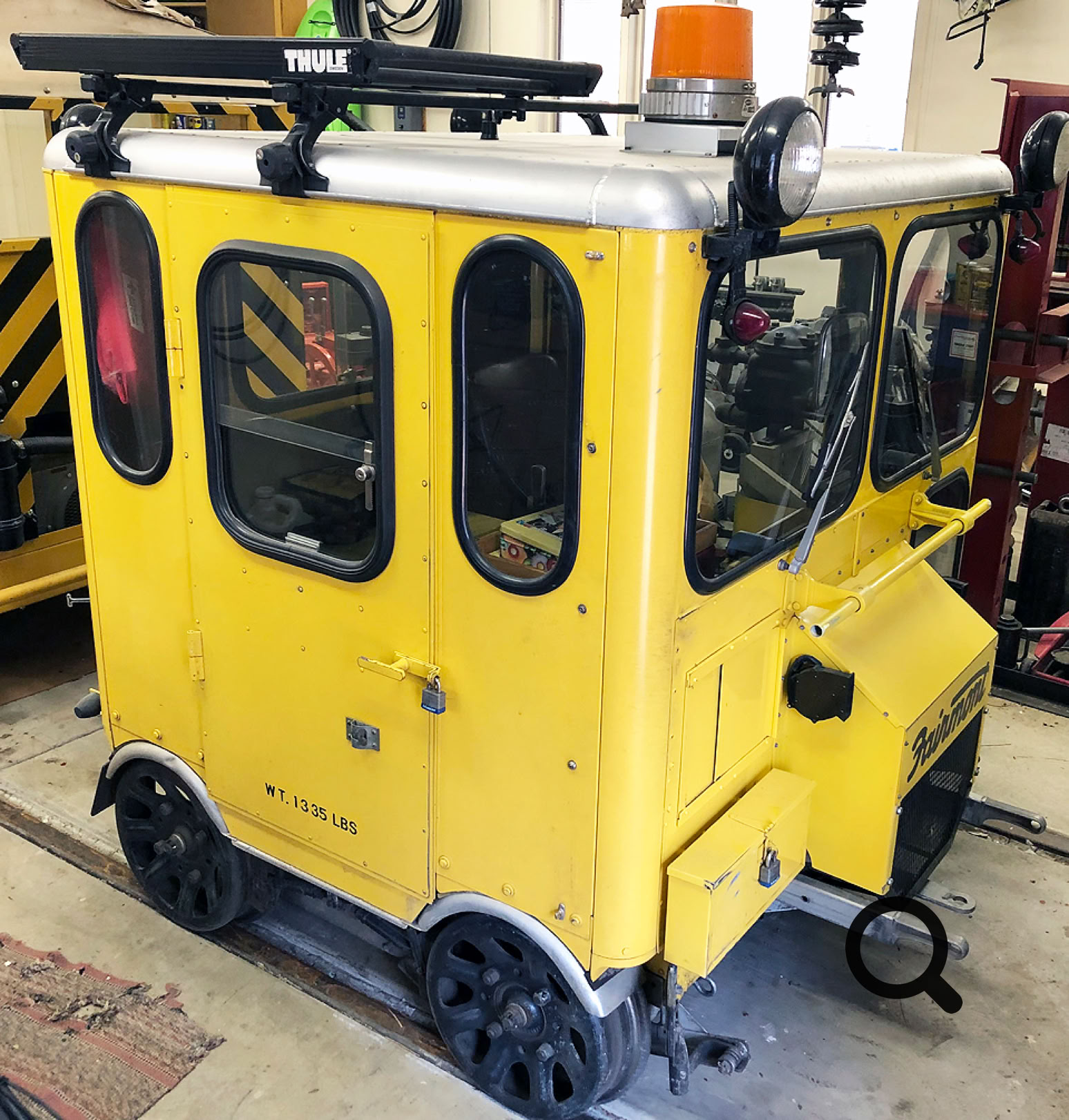 This has been a very reliable and dependable speeder with the previous owner as well as since we acquired it in 2015. When last on the rails, it was NARCOA, PRO, and MOW compliant. It comes with a very fast hydraulic turntable and many upgrades. Key-less hub and rear axle assembly, Canadian double roller chain and full chain guards to keep things clean, oversized brakes, and easy access engine covers. In addition, the exhaust system is equipped with Y pipe and spark arrestor, two-speed wiper motors and snap-on cover for the windshield while towing. Previous owner has completely rewired and added a fuse box with additional upgrades done by last owner. The motorcar comes equipped with Hi/Low beam headlights, dual strobe lights, air horns, brass air penny whistle, cable-car bell, vintage chain oiler, Kenwood radio, Flight Com Intercom with headsets, propane heater, stainless steel 6.5 gallon fuel tank with lockable storage compartments. Included is a custom-made, all-steel, tilt-bed trailer with LED tail lights and marker lights and a spare tire. The trailer is low and very easy to load/unload. There are also many spare parts and maintenance manuals. << SOLD >>