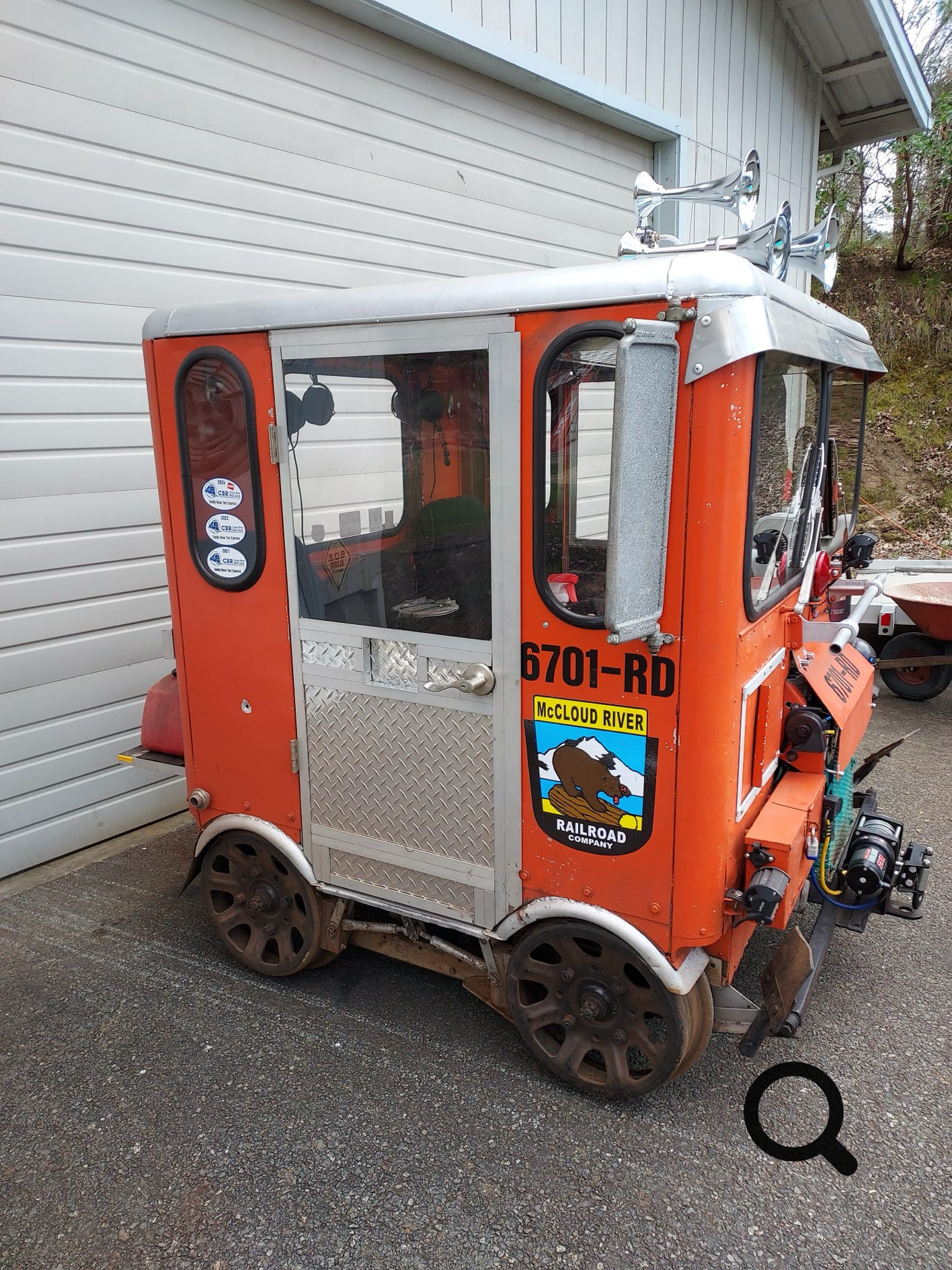 Onan engine, 2-way radio with (2) David Clark headsets, intercom, electric turntable, train-like air horns, electronic fuel pump, wheels with lots of rail miles left, good brakes, 12-V charging outlet, keyed master battery disconnect switch, all running lights and safety equipment included. Spare service parts also included. This railcar is in very good operating condition. I recently went on the 240 mile Coo’s Bay excursion in August of ‘25. (That was a terrific experience!!) It is completely NARCOA compliant and ready for your next excursion.