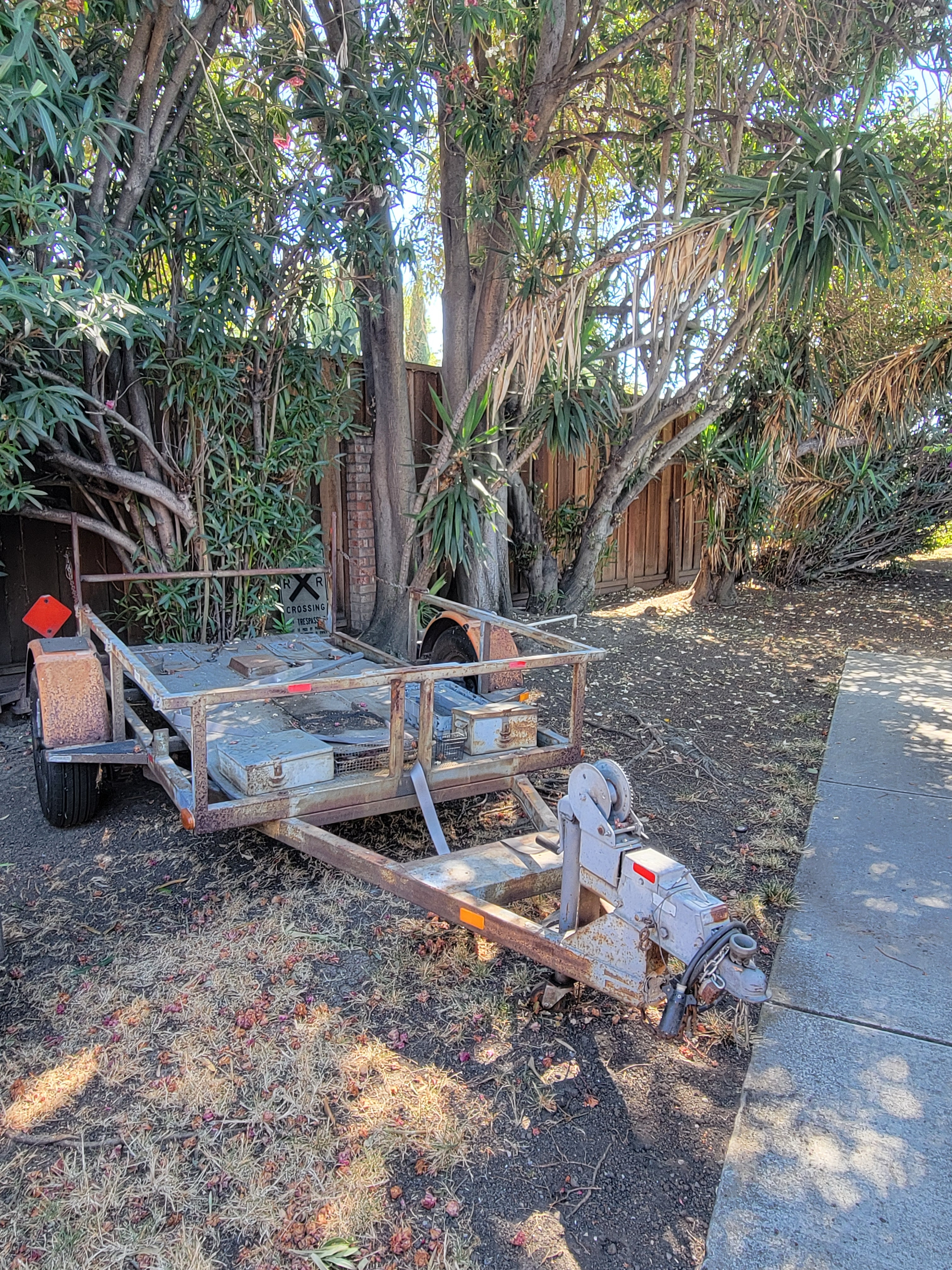 The tilt trailer is also in excellent condition with a 3500# electric winch, new battery and battery box. New decking, tie-downs and hardware. The trailer was recently refurbished with all surfaces sanded down, undercoated and painted.