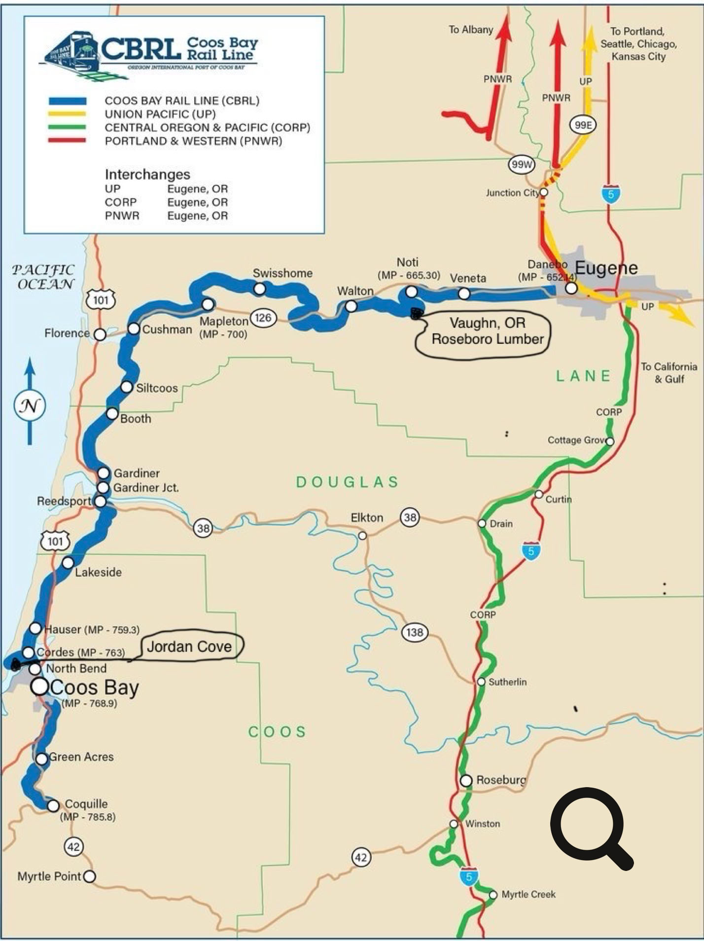 From Vaughn to Jordan Cove (Coos Bay), Oregon