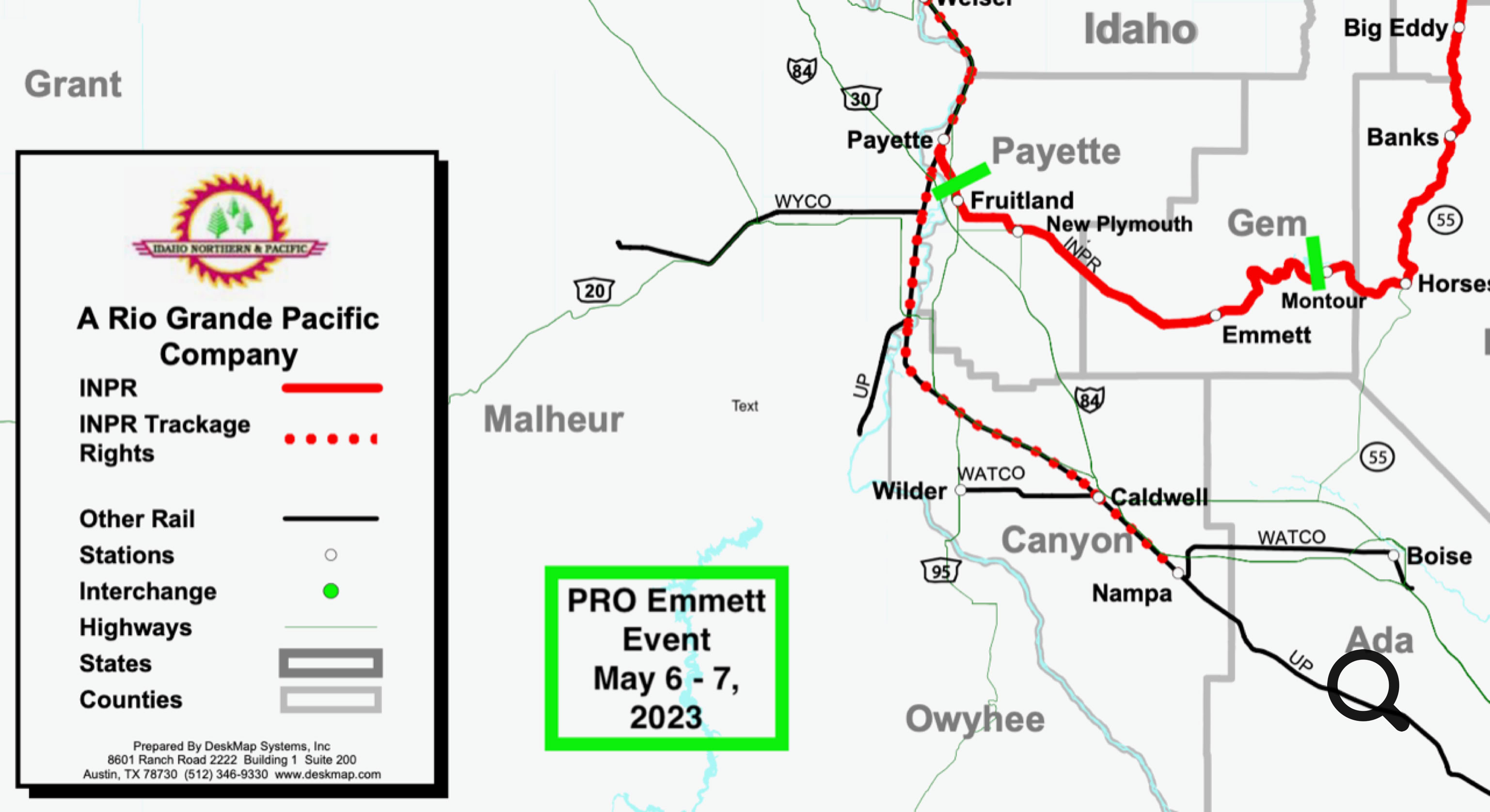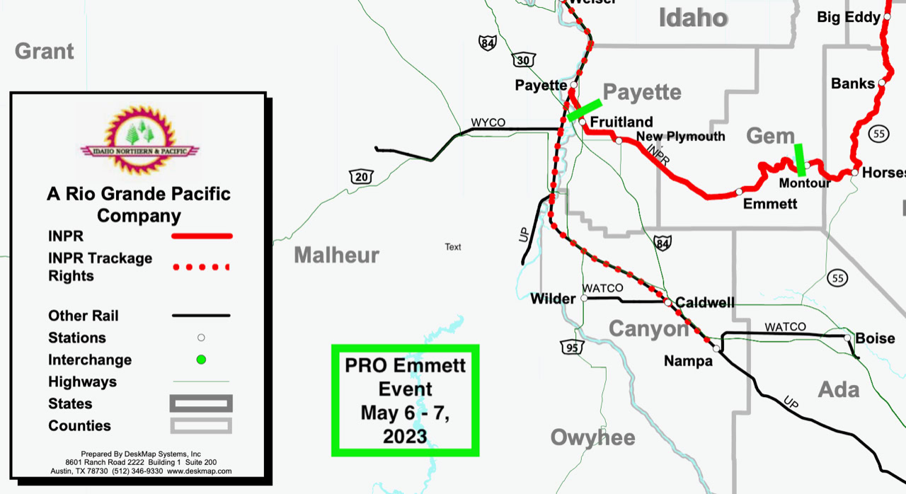 Sunday, we’ll head west to Fruitland then return to Emmett; next run east to the collapsed tunnel near Montour, and back to Emmett. Approximate total distance is 70 miles for Sunday.
